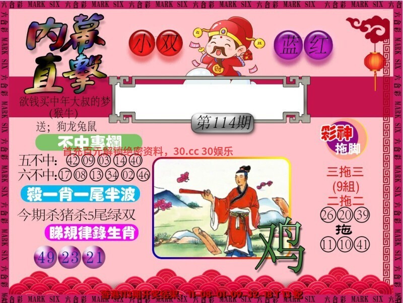 | 114期单双 | 单数+狗虎 | 兔39中 |